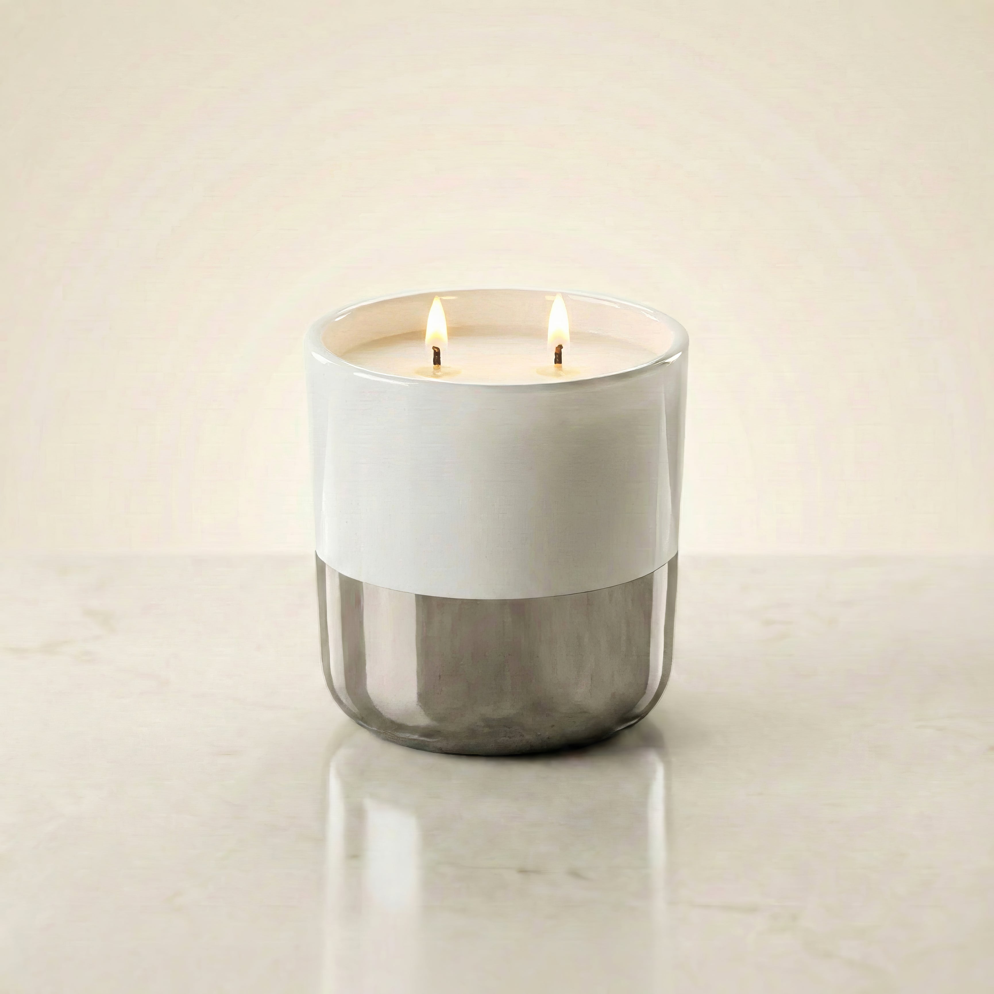 Crafted with premium coconut apricot wax for a clean, even, and long-lasting burn with exceptional fragrance throw, Cascading Moonlight is housed in an elegant white-to-silver ombré vessel that mirrors the sophisticated fade of twilight into moonlight. Its timeless glow fills any room with indulgent sophistication, transforming your space into a private sanctuary of warmth and allure. Pair it with its counterpart, Wistful Starlight, for a captivating duality that elevates your evening ritual and mindful decor.